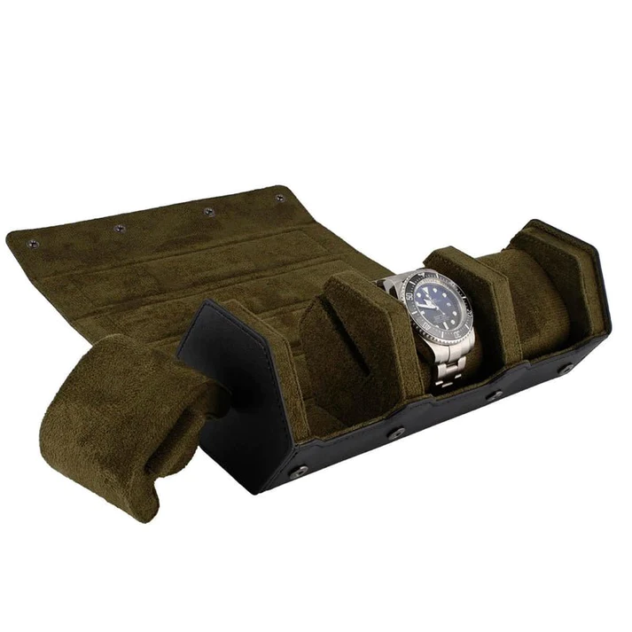 Introducing the 3 Watch Roll Case Hexagon Style in Fine Black Nappa Leather with Luxury Lining – Special Offer. This watch roll case is made from the finest quality black nappa leather and features a luxurious green lining. It is strong enough to protect your prestige watch collection in the safe or when you go travelling.